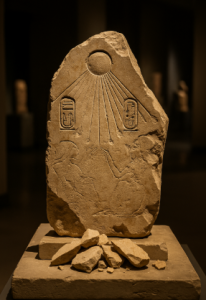 Upaya penghapusan ini cukup efektif sehingga selama ribuan tahun sedikit sekali yang diketahui tentang Akhenaten dan Aten. Nama Akhenaten nyaris tenggelam dari ingatan sampai akhirnya kota Amarna (Akhetaten) ditemukan kembali pada akhir abad ke-19 (Wikipedia). Penggalian arkeologi mengungkap prasasti, patung, dan dokumen (Amarna Letters) yang membuka tabir reformasi Aten yang pernah terjadi. Ironisnya, justru melalui jejak-jejak tersembunyi inilah kini Akhenaten dikenal sebagai firaun “revolusioner” – meski bagi penerusnya ia dianggap bidah. Kasus Aten menunjukkan bagaimana sebuah rezim bisa berupaya menghapus satu dewa dari sejarah, namun peninggalan materiil dan penelitian modern berhasil menghidupkan kembali kisahnya untuk generasi kita.