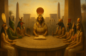 “Ennead = pasukan kiamat.” Tidak akurat. Di sumber utama, Ennead tampil paling jelas sebagai majelis pengadil & penjaga Ma’at (tribunal), bukan mesin pemusnah.